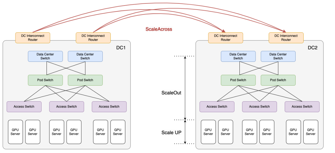 跨域扩展网络(Scale Across)是将多个数据中心互连,使其能够作为一统一集群共享工作负载。其核心在于通过高带宽,横向扩展网络搭建数据中心间的桥梁,提供远高于传统数据中心互联的传输能力。