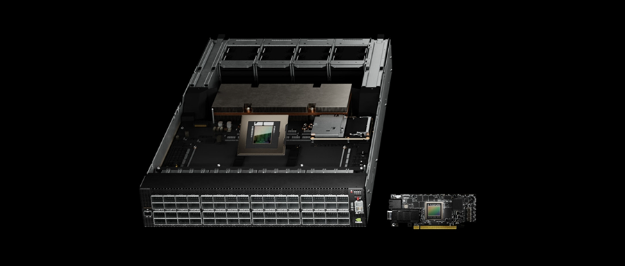 面对上述挑战,NVIDIA 推出的 Spectrum-X 以太网平台给出了系统级的解法。它并非简单的硬件堆叠,而是由 NVIDIA Spectrum-4 系列交换芯片、SuperNIC 网卡以及 BlueField DPU 组成的端到端的协同体系。