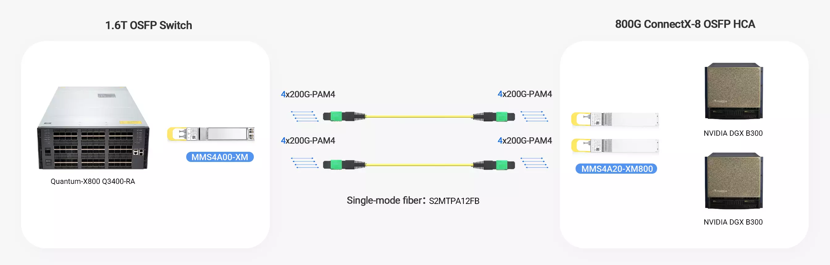 用于1.6T 交换机到 NVIDIA DGX B300 服务器的连接