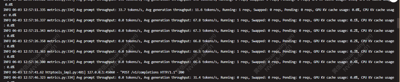 NIM使用TensorRT-LLM架构进行推理。这里使用的是Llama3-8b-instruct模型,在FP16精度下,采用NIM自动识别的双卡配置。