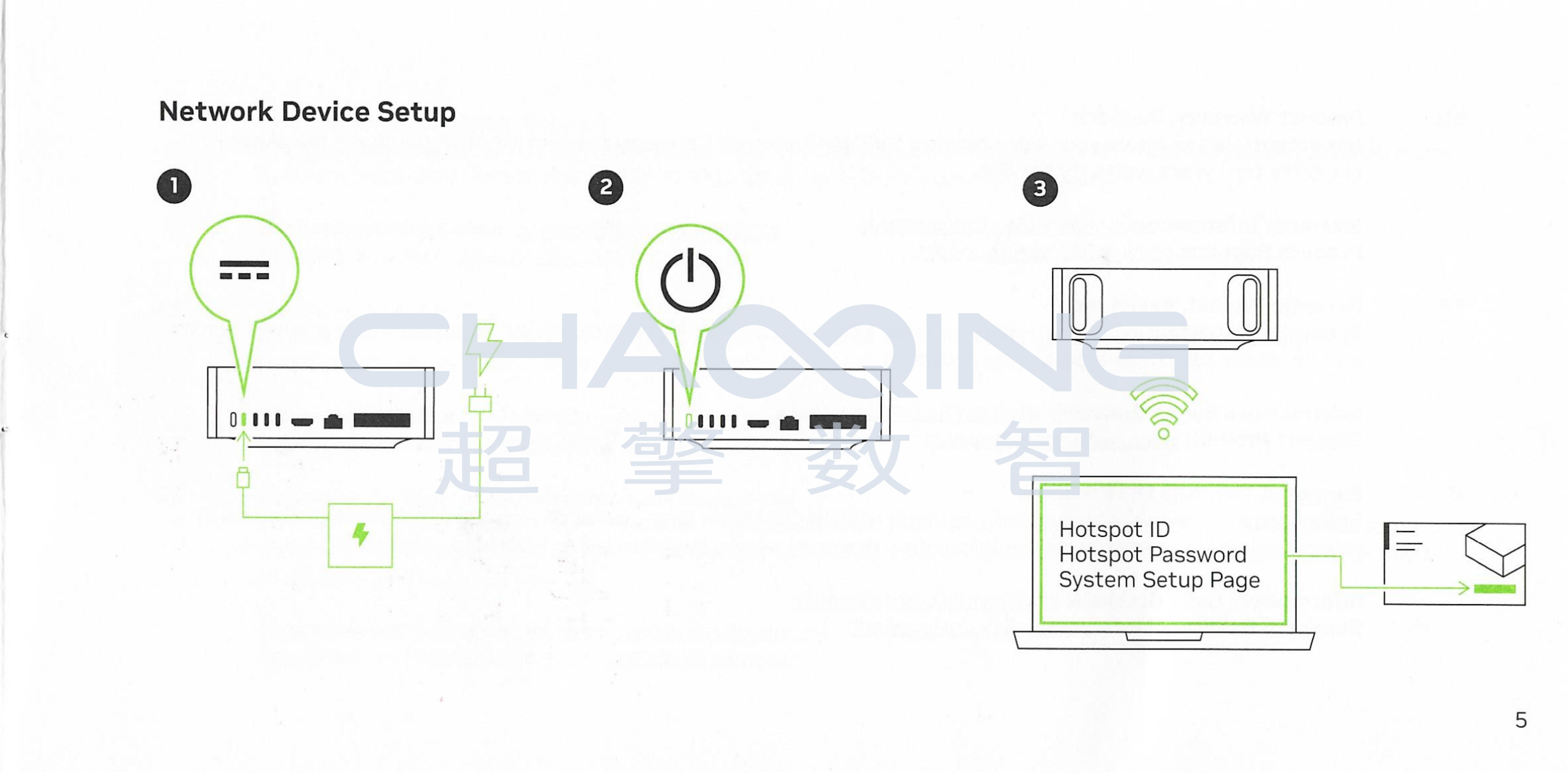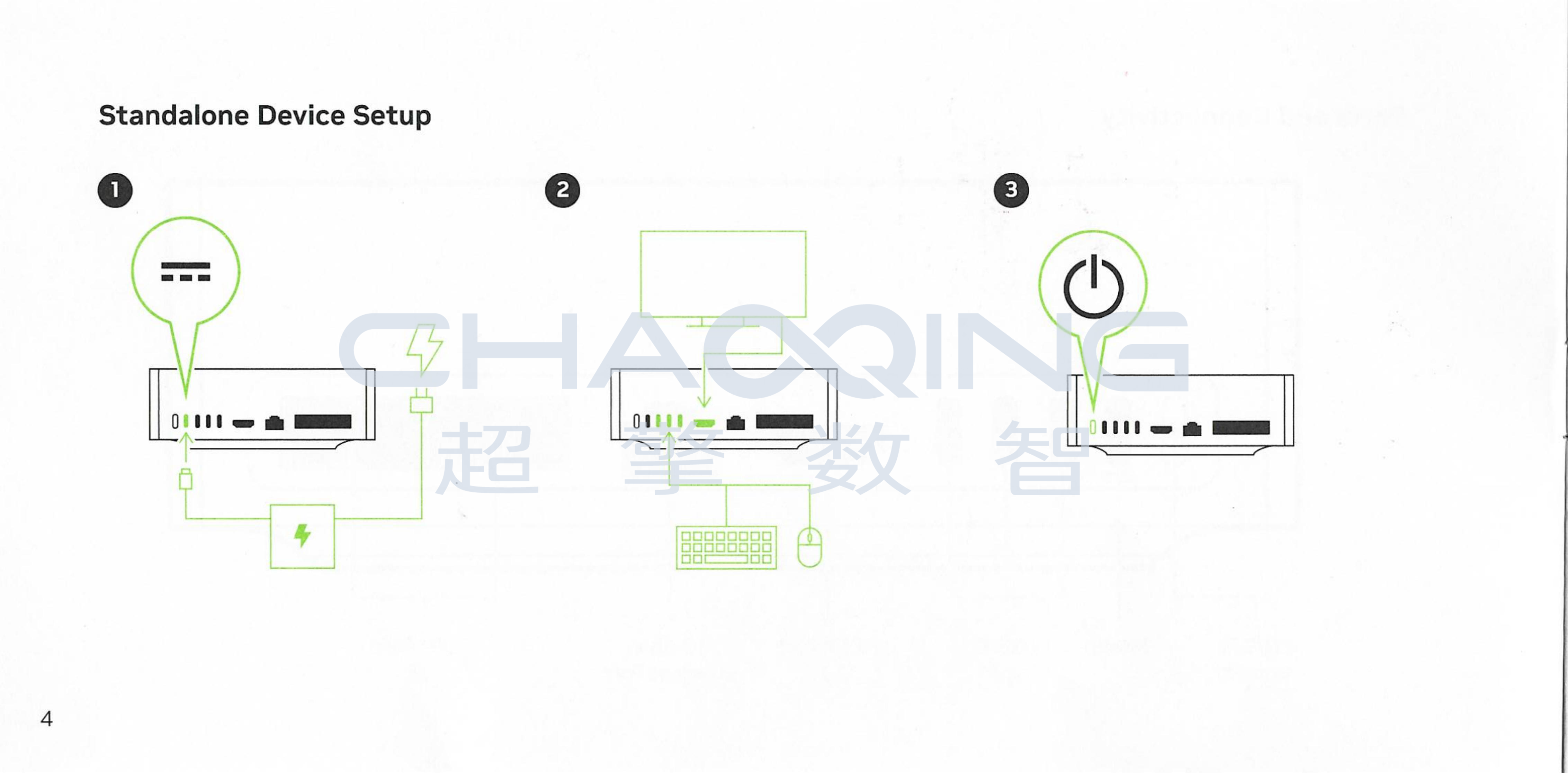 超擎数智技术团队第一时间对NVIDIA DGX Spark进行了开箱体验。NVIDIA DGX Spark随产品包装提供了一套电源线和《DGX Spark Quick Start Guide》手册,在《DGX Spark Quick Start Guide》封面,注明了DGX Spark的Hotsopt SSID、Hotsopt Password以及系统安装页面地址,用户通过手册,可详细了解DGX Spark的端口和联接、设备与网络安装,以及产品保修与服务支持信息。