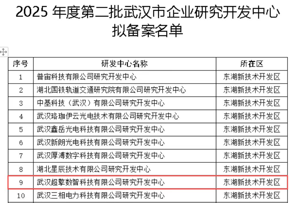 日前,武汉市科技创新局发布通知,凭借在人工智能领域突出的研发实力、持续的创新能力以及完善的研发体系,超擎数智成功获批武汉市企业研究开发中心。这是超擎数智继入选湖北省专精特新中小企业之后,在研发创新方面获得的又一荣誉,标志着公司人工智能技术研发能力和创新平台建设得到进一步认可。