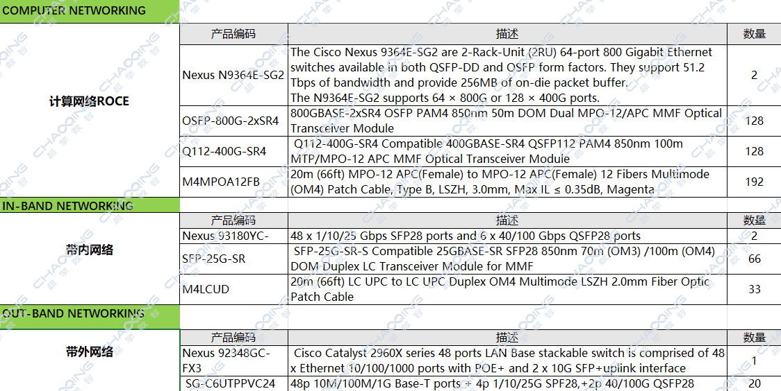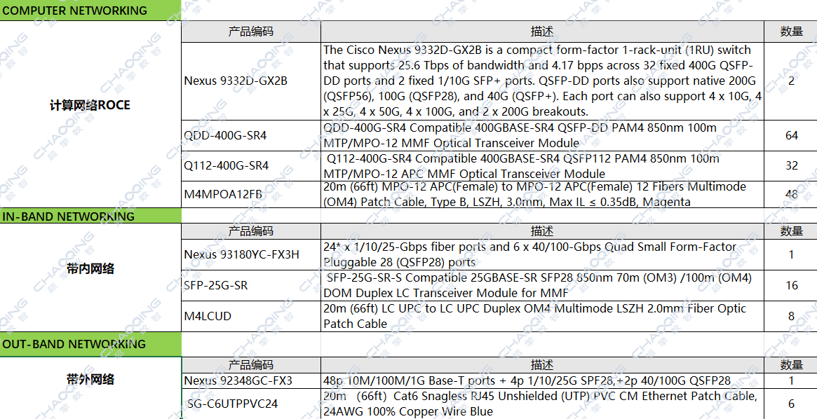交换机:Nexus N9364E-SG2(64*800G)、 Nexus 9332D-GX2B(32*400G)……