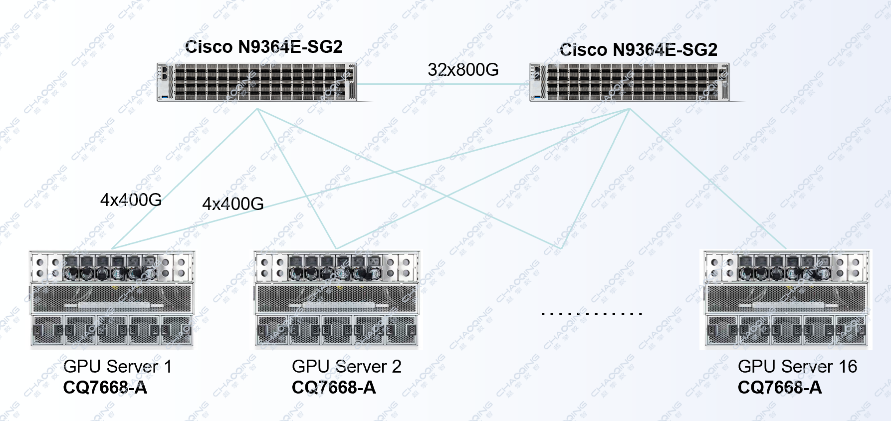 该方案以超擎数智CX8架构的元景系列AI服务器CQ7668-A为计算核心,凭借其超强I/O能力与硬件级并行优化,充分释放多机并行场景中的有效GPU算力;同时,结合思科400G/800G Nexus无损网络,构建端到端可视、可预测、可扩展的AI高速互联底座。