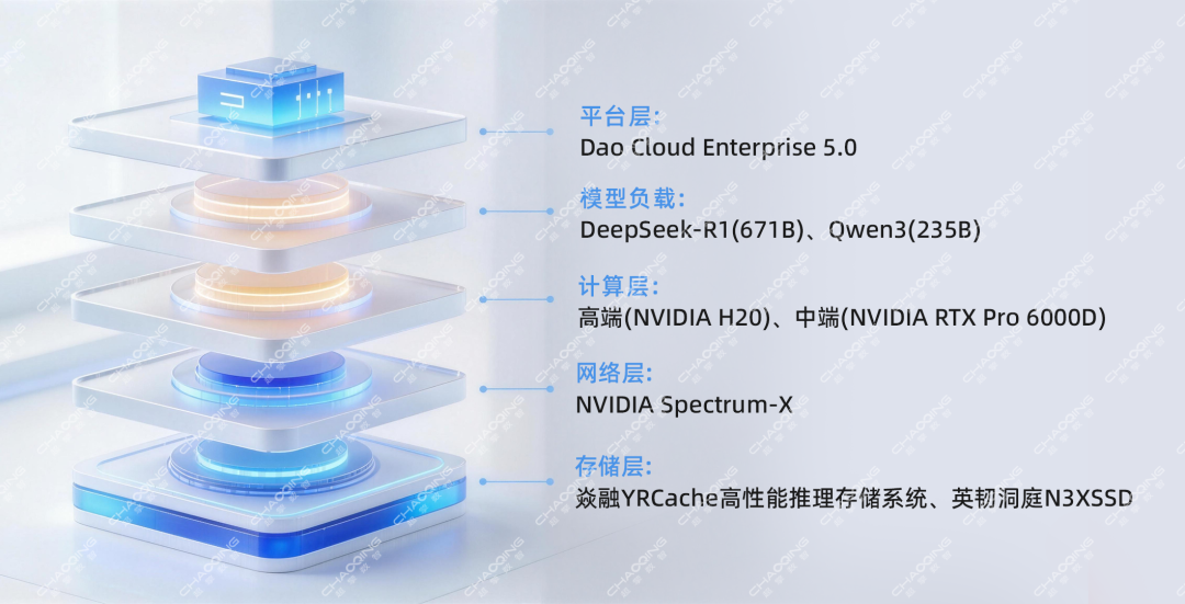 存储层:采用焱融YRCache高性能推理存储系统、英韧洞庭N3X SSD,专为缓存命中优化。
