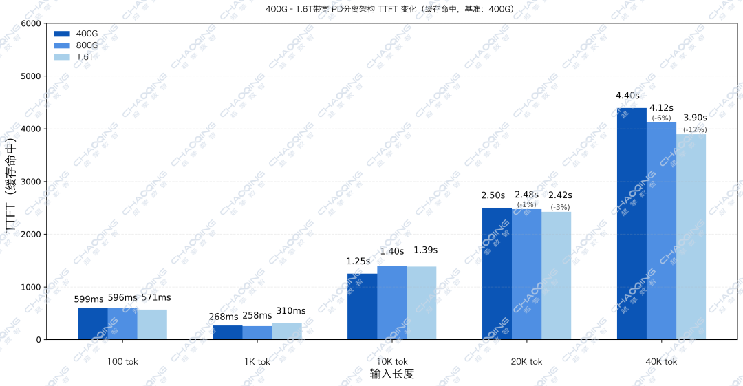 数据显示,在40K Token长文本下,1.6T带宽相比400G降低了12%的延迟。当架构本身已较优时,进一步提升的难度自然加大。