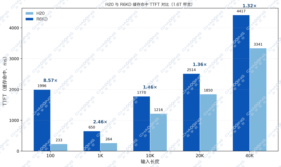 但在超长文本(40K Tokens)场景下,当配置了1.6T的超高速网络进行KV Cache卸载时,两者的性能差距被惊人地缩小到了1.3倍左右。