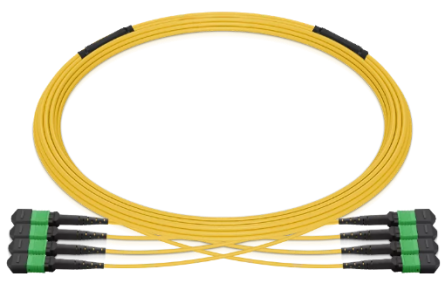 专为满足高速数据中心与AI集群的高密度互联而生。S2MPOA4x8F4(OS2 单模,适用长距离核心互联)与M4MPOA4x8F4(OM4多模,适用机柜内短距互联)采用4×MPO-8的4×4 Shuffle架构设计(共 32 芯)。通过Type 4极性,实现光纤通道的精准重新分配,最大化端口利用率。